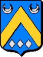 | D’azur au chevron d’or, accompagné en chef de 2 étoiles, et en pointe d’une cabane, le tout d’argent. CFH, 2004.
