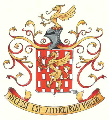 gueules. Cimier : un griffon issant d’or. Devise : NECESSE EST